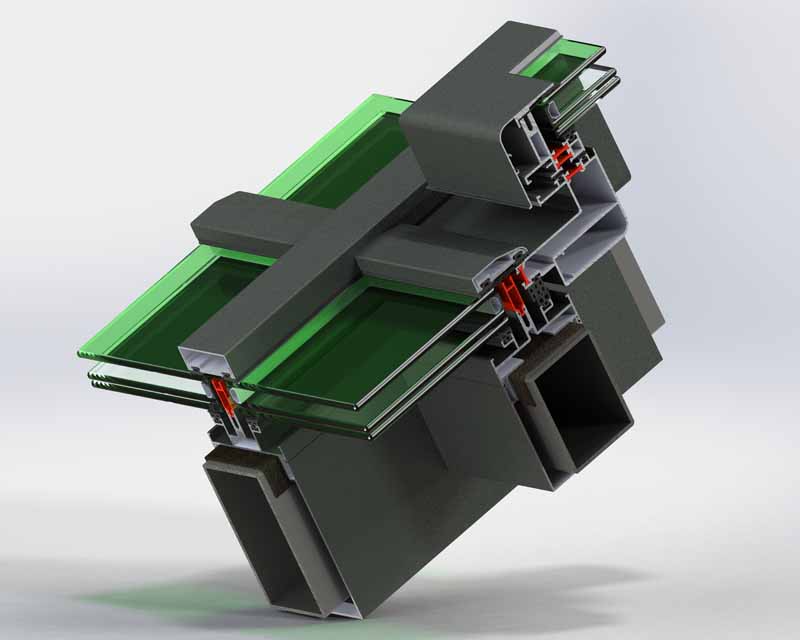 Beim SKY78-System, das im Allgemeinen für Stahlträgeroberteile verwendet wird und in weiten Öffnungen bevorzugt wird, kann der Flügel bei Bedarf zur Belüftung und Rauchabführung eingesetzt werden. Dank der Kondensatkanäle in den Trägerprofilen kann sowohl das Kondenswasser im System als auch das Kondenswasser auf der inneren Glasoberfläche entfernt werden.
